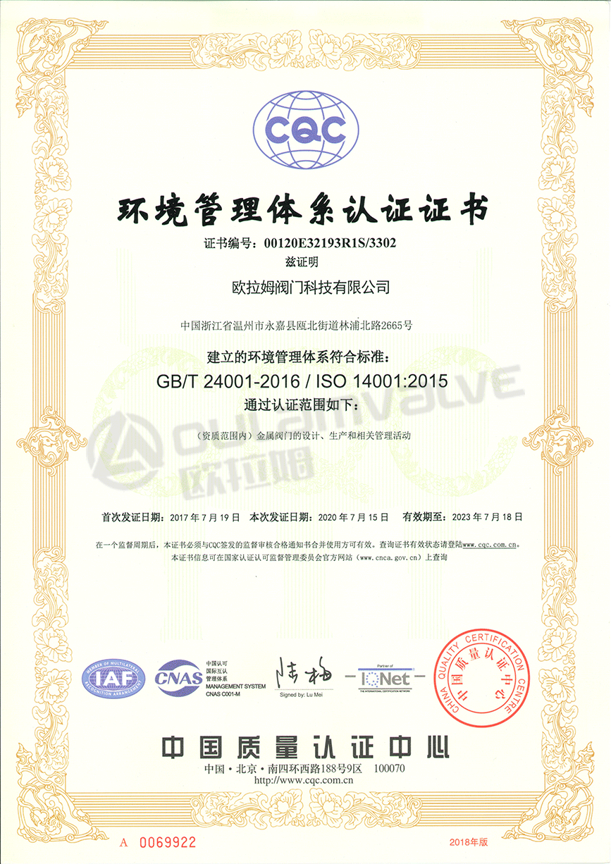 環境管理體系認證證書